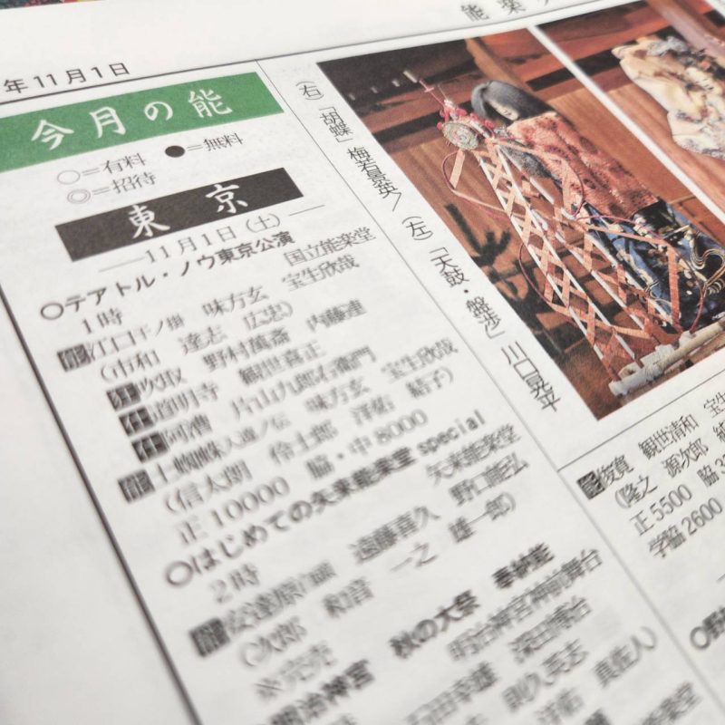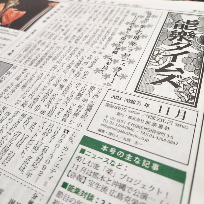 ◆2025年11月の全国の能楽公演カレンダー「今月の能」収録◆