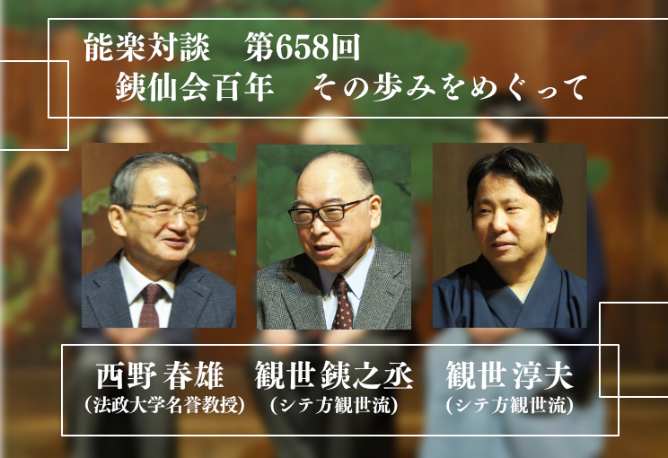 ▼大正14年の第1回演能会から今年で100年を迎える、観世銕之丞家を中心とした演能団体・銕仙会。戦争を生き延びた観世寿夫、栄夫、静夫の兄弟は新しい時代の中で人々に能を見てもらうべくどのように情熱を注いだのか、現代で能楽を後世に伝えていくため銕仙会がいま重んじていること、描いている未来とは何か――現当主の観世銕之丞(本名:暁夫)氏と長男の観世淳夫氏、学生時代から会員として半世紀以上銕仙会の定例会を見続け、静夫と復曲能も手掛けてきた能楽研究者の西野春雄氏に語っていただいた。