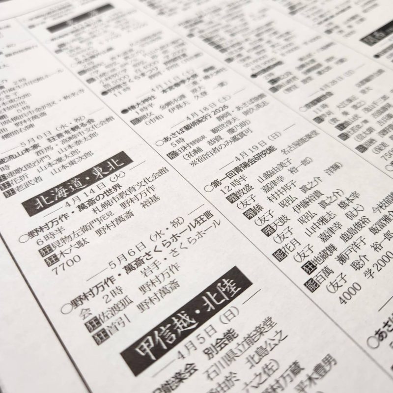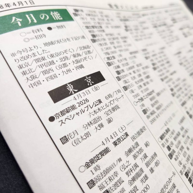 ◆2026年4月の全国の能楽公演カレンダー「今月の能」収録◆