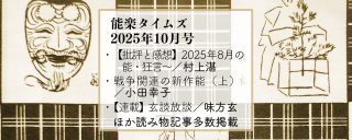 2025.9.30 ダイジェスト版 2025年10月号 能楽タイムズ(第883号) 〈批評と感想〉 慰霊鎮魂の名舞台〈砧〉〜2025年8月の能・… #小田幸子,#村上湛,#飯塚恵理人,#味方玄,#能楽タイムズ,#網本尚子