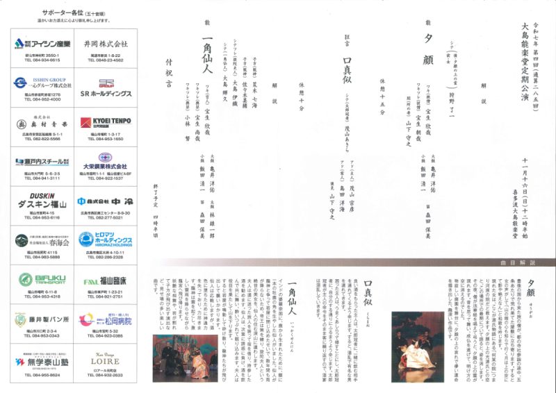 令和7年 第4回(第285回)大島能楽堂定期公演