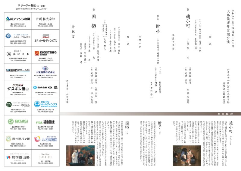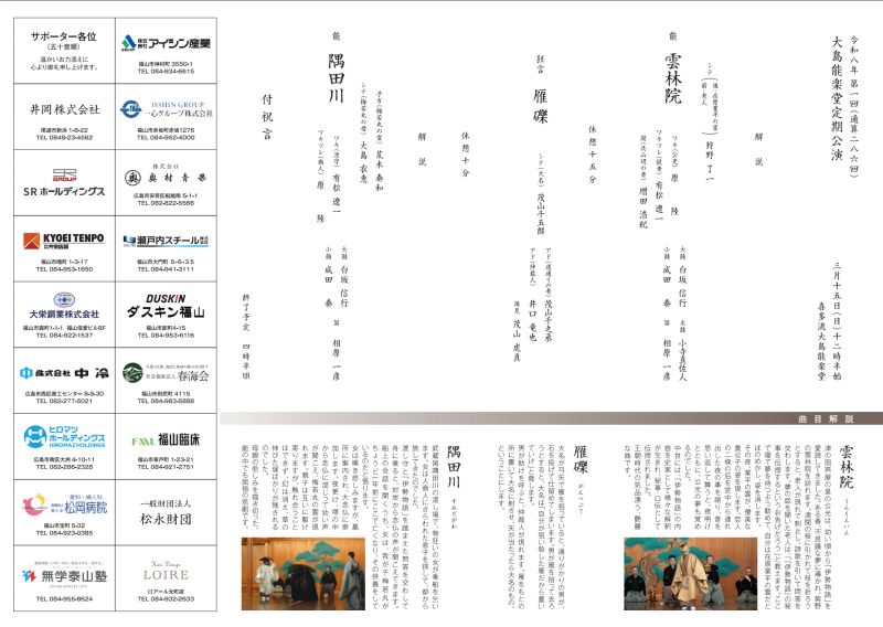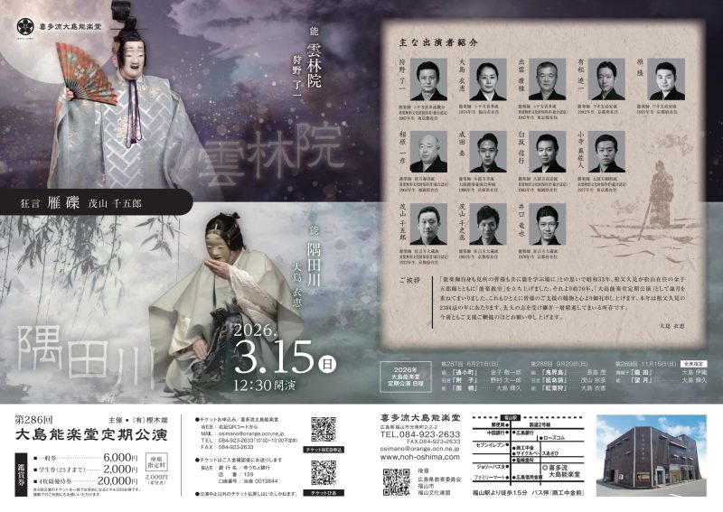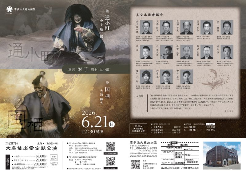 大島能楽堂 定期公演 令和8年 於・喜多流大島能楽堂(広島県福山市光南町2-2-2)