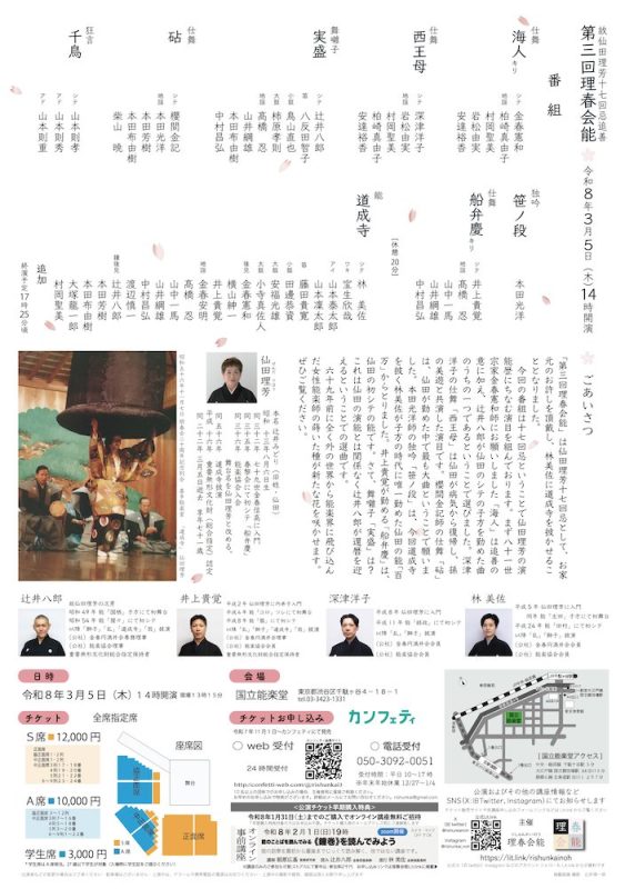 令和8年3月5日(木)14時開演 会場:国立能楽堂